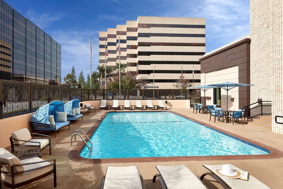 In order to ensure the utmost level of relaxation, the guestrooms feature an inviting design and are equipped with all basic necessities, creating a delightful stay experience. To ensure your satisfaction, certain rooms in the hotel come fitted with blackout curtains for a more pleasant stay. Several chosen accommodations at Hilton Pasadena have a balcony or terrace incorporated into the room design. In select rooms, visitors can enjoy a touch of amusement with the availability of daily newspaper, television and in-room video streaming for their entertainment needs. Rest assured, quenching your thirst is not a concern with instant tea available in select accommodations.