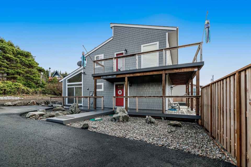 Welcome to Seatime 2, a highly in-demand oceanfront vacation home located at Holiday Beach, a pristine, beautiful seven-mile stretch of sand and surf that you will feel is your very own private beach. Located just south of Newport, where restaurants, shopping, and ocean activities abound, you will have no shortage of fun activities to choose from. Seatime 2 is newly remodeled inside, with a new porch, upper deck, and fencing. This rental boasts a great view of the ocean and a private fenced pathway to 70 steps down the steep beach stairs to the white sand. This house in South Beach makes for a wonderful large-group escape, boasting an oceanfront location with sea views, a private hot tub, and a dog-friendly attitude. Natural light, cozy rooms, and various forms of entertainment will please guests of every age and interest. The home is also stocked with anything you might need at the beach, including extras such as beach towels and boogie boards.