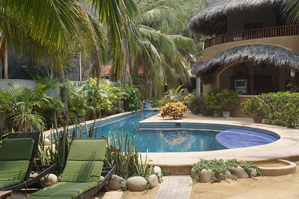 We particularly enjoyed the unique-shaped pool, which worked well for lap swimming. This is not a common trait among Troncones pools. There were also comfy pool floats available to use in the deep end. We were there three nights, and were the only people using the pool the whole time (that we saw). We wished we could have stayed a fourth night, but the whole place was booked for Saturday night. Leela recommended a hotel down the road that worked well for us.