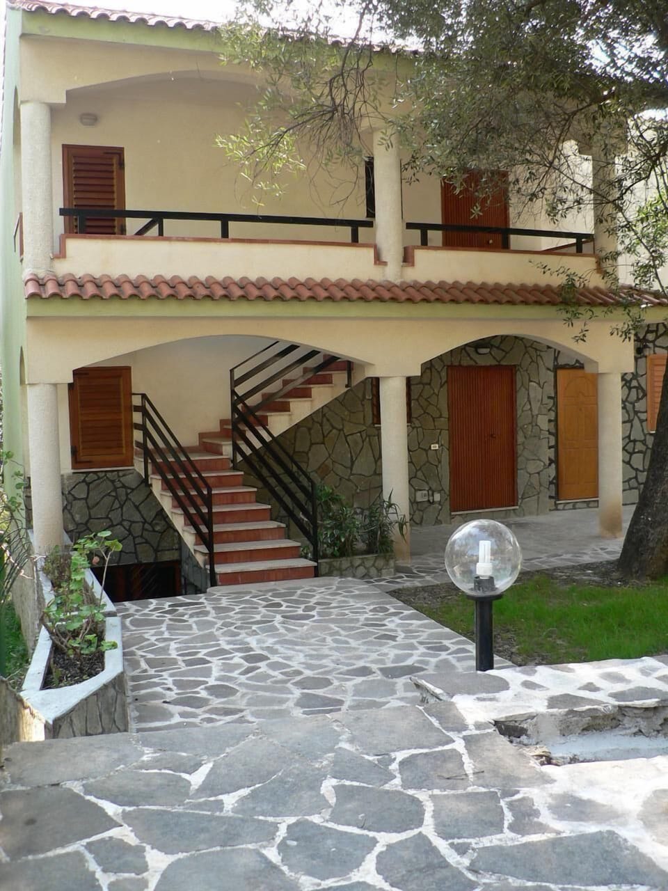 Villa Cecilia, a large vacation house composed of four independent apartments. Apartment 3: 2 bedrooms (max. 6 people), 1 bathroom/shower, an entrance-living room, large kitchen, balcony with garden and sea view; All rooms are completely furnished. Sat TV in each apartment. In the kitchen: fridge, micro wave, traditional oven and small electrical appliances.