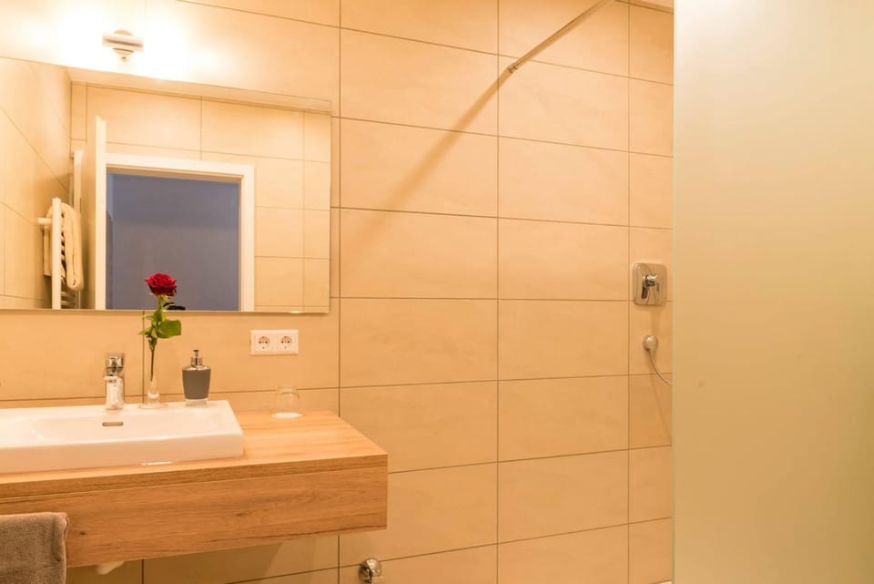 Dusche war modern und gut aber leider auf einer Seite offen, wodurch das Waschbecken nach dem Duschen komplett nass war. Das ist jetzt meckern auf hohem Niveau, denn eigentlich war alles gut