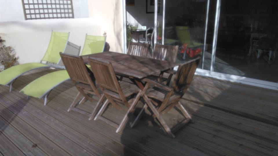 Our garden is 300 m²: cabin, slide, deckchairs, barbecue!
