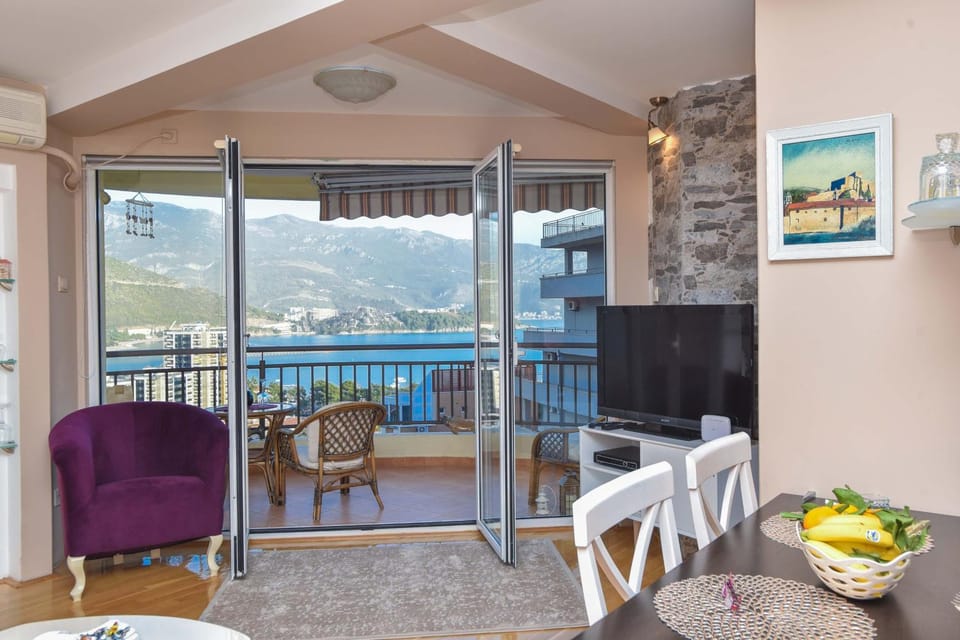 Perfect for a city vacation on the beach. The apartment is comfortable and well equipped. The built-in balcony can be used as a children's room. The balcony overlooks the bay and the sea. It was nice sitting on the balcony with a drink or having breakfast. Budva is a big city and the apartment is close to the center, so you can hear the noise of the traffic and the sounds of nightlife on the balcony. If you close the window, there is silence. The air conditioner worked super.