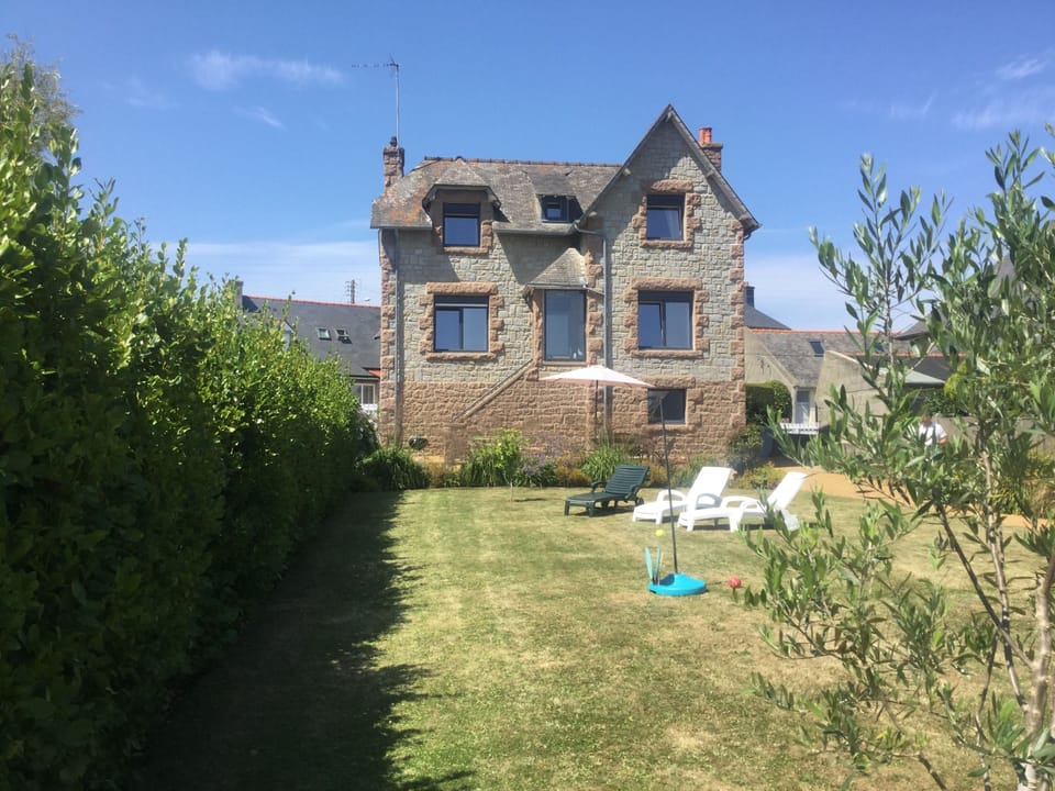 In the basement: A laundry room: Washing machine, dryer, table + iron. Enclosed garden of 350 m², garden furniture, barbecue and games for children. Close to all amenities: Trestraou beach 10 min walk, town center and market 5 min walk, customs trail accessible on foot from the house.