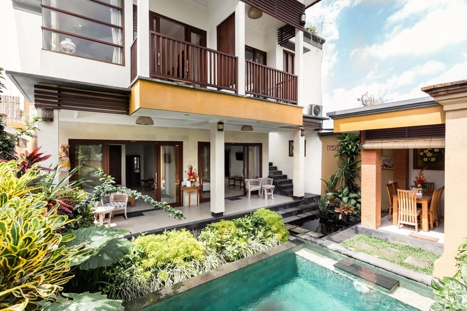 Experience Balinese stay in Four Bedroom Villa with private pool in the Heart of Penestanan Village, unique location inside the Balinese Art Family Compound surround by Balinese Hindu Temple.