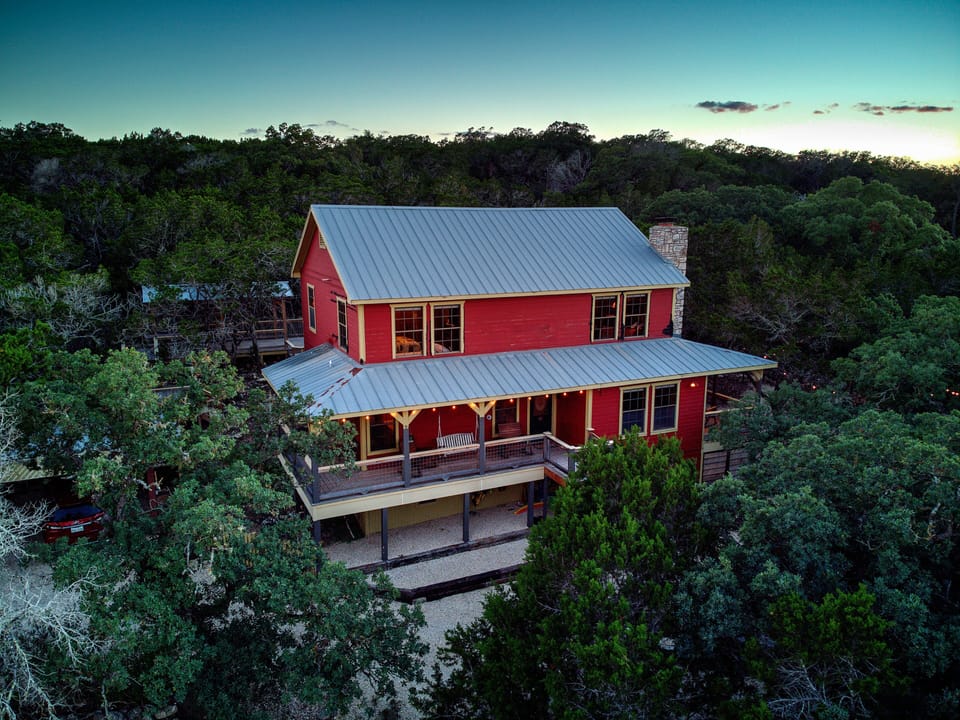 With it's high elevation and unique design, Hilltop Cabin is the most unique home you will find in the Guadalupe South Fork area. Where else can you find such a charming home with expansive views, wooded privacy and private river access? What more could you ask for? The Cabin is loaded with both hill country charm, and modern amenities. This is a full size home that leaves nothing to be desired, while providing the charm and fun of a rustic Texas hill country cabin. There are 3 bedrooms, all with queen beds, and each with its own full bathroom, comfortably sleeping a total of 6 adults. There is also a full sleeping sofa and several blow up mattresses and a half bath downstairs for additional sleeping arrangements for several children. The kitchen and dining areas are very large, which make for great meal prepping and gathering for large groups. The laundry room is what you would expect to find in a larger home, with a full size washer and dryer. The main living space is large enough for a big gathering with plenty of places for everyone to gather around the wood burning fireplace. We keep the house well stocked with toiletries including wet wipes, toilet paper as well as shampoo, conditioner and his and hers body washes for your convenience. Outdoor living spaces include multiple options for sun and shade as needed. A large porch sits off of the main living space with rocking chairs and ceiling fans. From this porch you can step down to a large outdoor gathering area with plenty of seating and a fire pit. We have extensive decking in the back of the house with seating right off of the dining area, upper decking with two picnic tables under cover , as well as a large charcoal barbecue pit for outdoor grilling. There is a wrap around porch along the front and side of the house with chairs and a bench swing to take in the hilltop views across the Guadalupe River Valley. There are also several sitting areas around the 2.5 acres for enjoying the many different areas of the secluded and private property. Although the property is not riverfront, the private river park is a quick 3-5 minute walk from the front door (we've timed it). You can also access the park via a shorter drive for anyone that has mobility issues. The River Inn Crossing section of the Guadalupe is at the headwaters of the south fork, giving you the cleanest, clearest water that the river has to offer. The depth and width of the river in this section is perfect for all water activities. Many other sections of the river are either too shallow for swimming and canoeing, or too narrow for real exploring. An added bonus this far up the river is the clarity of the water. On a typical day, the water is virtually as clear as a swimming pool. This is one of the only locations on the Guadalupe where snorkeling is a real option, so don't let the kids forget their goggles. Parents won't have to worry about the little ones, because you can see straight to the bottom, and the average depth in front of the park is about 3.5 feet. There is also a very neat section where you can get out of the kayaks and walk around and explore the shallow channels and pools (probably our kids favorite spot). Although the cabin is far enough out that you have true privacy, serenity and quiet, it is a perfect home base for hitting all of the different places that people like to go. You can make a quick and very picturesque 25 min drive over to Vanderpool for a couple of hours of hiking or picnicking at Lost Maples State Park. You can head over to Fredericksburg, which is only 20 minutes from Kerrville, and spend a few hours shopping or antiquing. Maybe you want to go horseback riding or fishing in another location. Maybe you are a motorcyclist and want to hit the infamous Twisted Sisters which are very close to Hwy 39.. Then again, maybe you just want to hang at the river and cabin, and get a full weekend of relaxation in, while the kids wear themselves out with all the fun and activities. The great thing about staying at the cabin, is that the activities are endless and are all right at your fingertips. You may also enjoy the various type of wildlife around the cabin and area. Axis and whitetail deer, raccoons, ringtails, opossums, skunk, porcupines, foxes, bobcats, turkey, roadrunners, javelina, armadillo, rabbits and all types of birds etc.