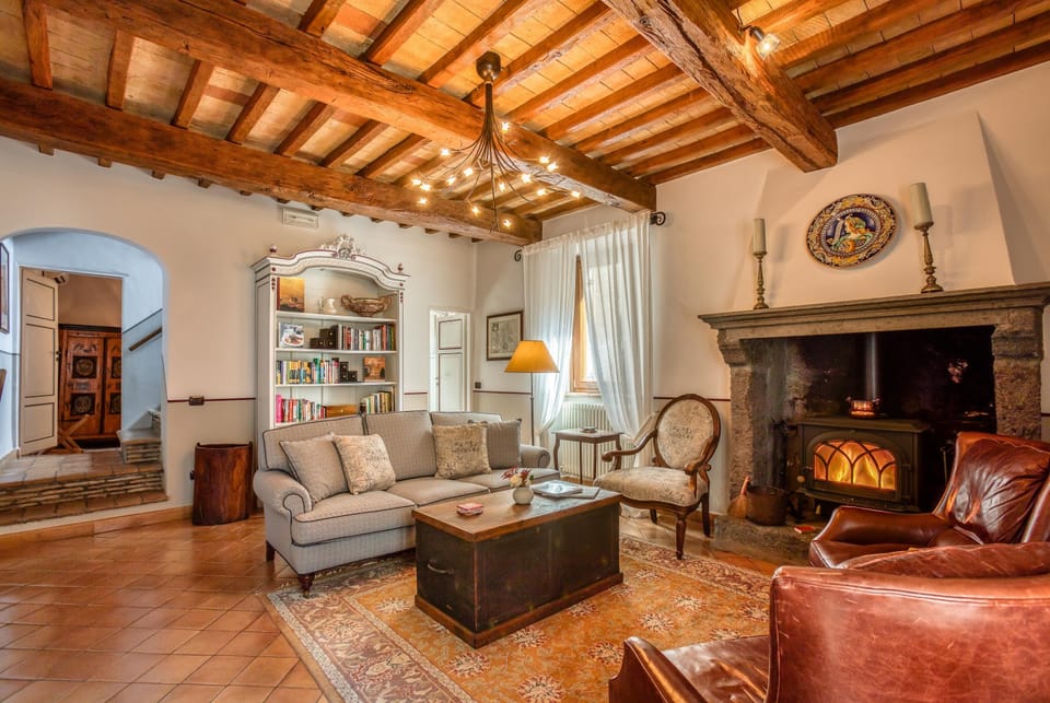 The five bedrooms, four modern bathrooms, and two common areas are spread out over four floors in a house nestled into a medieval walled village. The villa is your meticulously restored home away from home featuring original stone walls, exposed wooden beams, terracotta floors, and a stunning ancient wine cellar carved out of bedrock. We have outfitted the house with every modern convenience, so you can stream whatever you want to watch while sitting steps away from a cantina probably dug by Etruscan hands some 25 centuries ago!
