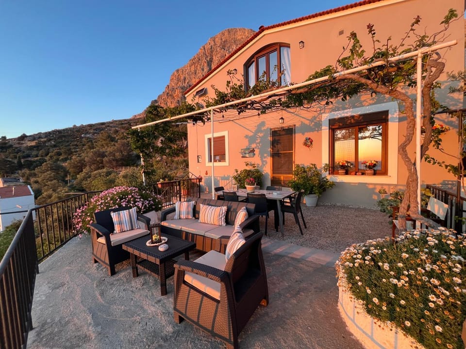 Eine bessere Lager wird man an diesem Ort wahrscheinlich nicht finden. Die Aussicht von der Terrasse auf das Meer und auf die Nachbarinsel Telendos ist einfach unvergleichlich, v.a. bei einem schönen Sonnenuntergang. Aufgrund der großen und sehr leibevoll gestaltetenTerrasse kann man die Aussicht auch wunderbar genießen. Man kann auch den großen und sehr schönen Garten nutzen.