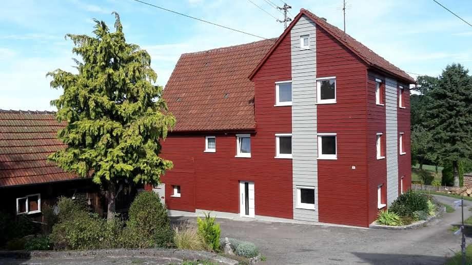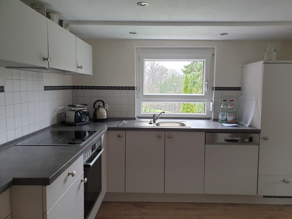 Tolles Ferienhaus, gut ausgestattet, super ruhige Lage am Feldrand, dahinter der Wald. Für uns super aufgeteilt, ein Schlafzimmer mit Bad unten, Küche und Wohnzimmer Mitte, zwei Schlafzimmer mit Bad oben. Es gibt einen Tisch mit Stühlen und Grill außen und eine Wiese mit Apfel und Pflaumenbäumen, auf dem gemütliche Liegestühle warten.