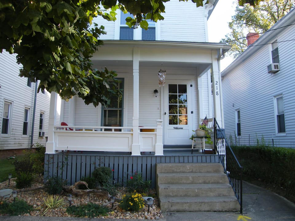 River Rock Cottage is a fully furnished 3 bedroom Victorian style home. The 2nd & 3rd bedrooms are adjoining and entrance to the upstairs bath from all rooms is through twin bedroom. Youll have the entire home for your family and friends. The inviting front porch is a great place to unwind and enjoy the sights and sounds of small town living. Our kitchen is fully equipped for your convenience and has everything you need to prepare a meal should you choose to eat 'in.' We have a grill for outdoor cooking and outdoor seating on the back deck for dining. Our large dining room table will accommodate your large family gatherings! We have wireless internet as well as Roku TV in 2 rooms, with flat screen TV. We offer 3 bedrooms, one with a queen bed, 1 with a 2 twin beda. & trundle, 1 with a full size bed, accessed through twin bedroom but can close doors for privacy. We also an additional twin bed roll away upon request. Our downstairs bath has a tub and tiled shower. There is a new bath with shower on 2nd floor.. River Rock Cottage has all you need for your family. From the time you walk up onto the nice & homey front porch until you leave, your needs will be met with all the amenities provided. We believe your stay at River Rock Cottage will hold many memories and bring you back time and time again and that you will be happy to share your discovery with your friends! The cottage is located 1/2 block from Historic Harmar District. Just up the street you will be able to cross over into historic Marietta, OH where you will find "shopping till you drop" and many restaurants, including outdoor dining & pizza pubs. At the end of the bridge, you may rent a bike to ride the 'walking trail' and cool off with an ice cream or cold drink at the snackbar there. Just across the street you will find Harmar Tavern, famous for 'fried bologna sandwiches' and they have a nice outdoor terrace! On the corner is the upscale Italian restaurant which offers terrace dining, Spagnas. Busy Bee Restaurant, on the corner at Harmar District is a local favorite featuring farm to table eating, for a a quick bite and a hearty breakfast! The Aquatic Park is near and you can walk to it on the walking trail in about 45 minutes. Seneca Lake is within driving distance if your prefer outdoor lake activities. Be sure to check out the museums that tell of the historic beginnings of Marietta. Marietta also holds an annual Sternwheelers Festival in September with the BEST fireworks ever! We hope to hear from you soon and can't wait for you to enjoy our little gem...River Rock Cottage!!!