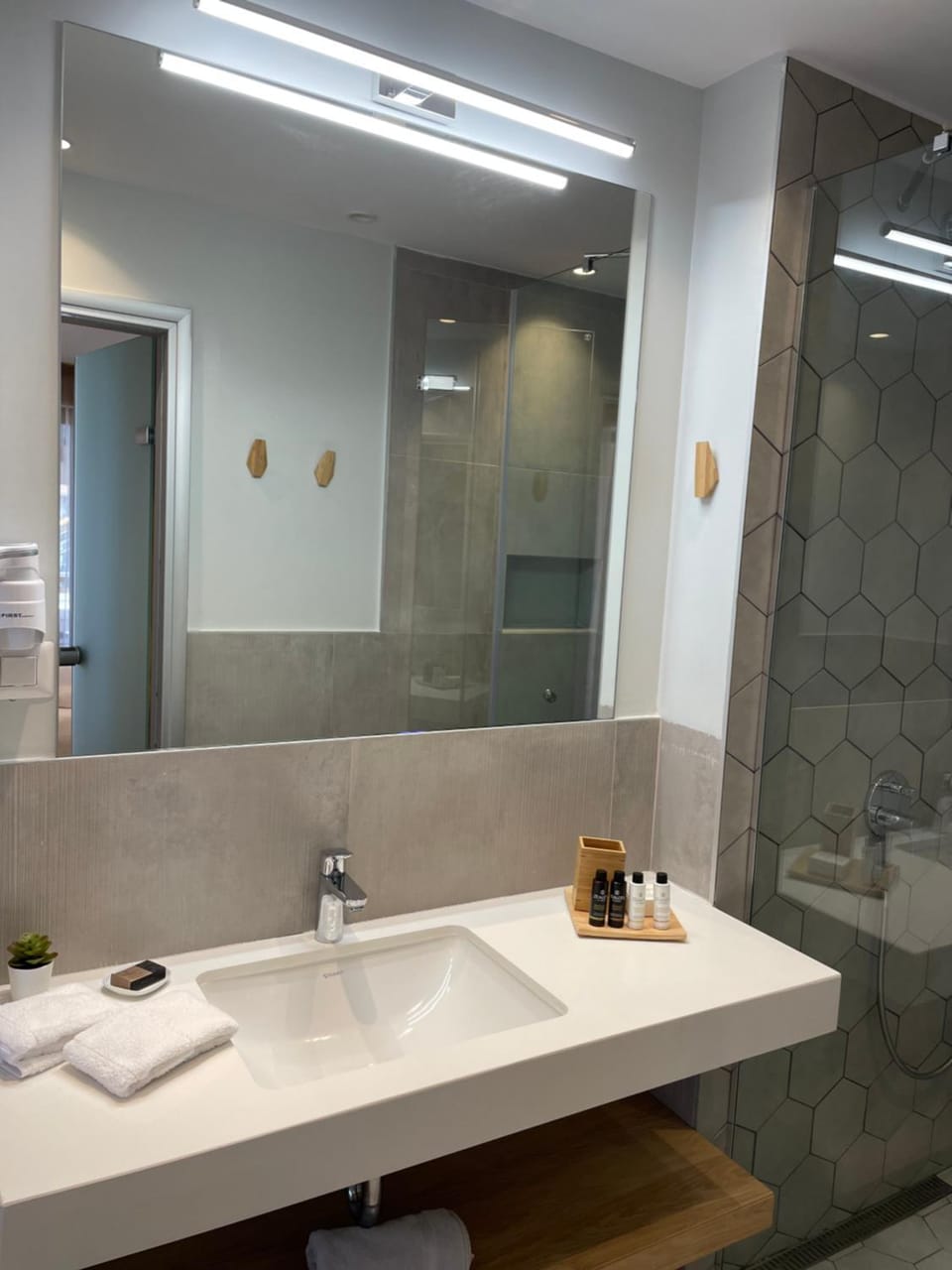 Very comfortable and wide bed, spacious and clean apartment (bungalow in our case) with great view on lush greenery and sea. The staff were also amazing, especially Jacob. Food was nice, although there were not so many choices.