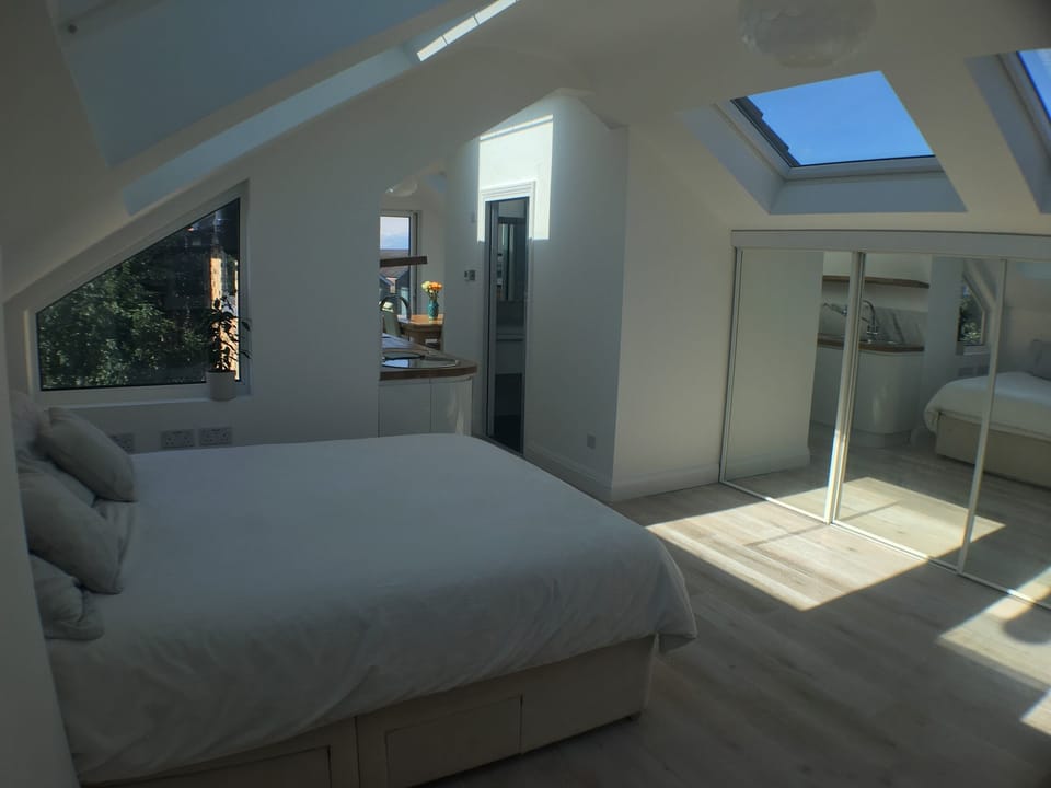 King-size bed under skylights: fall asleep looking at stars!