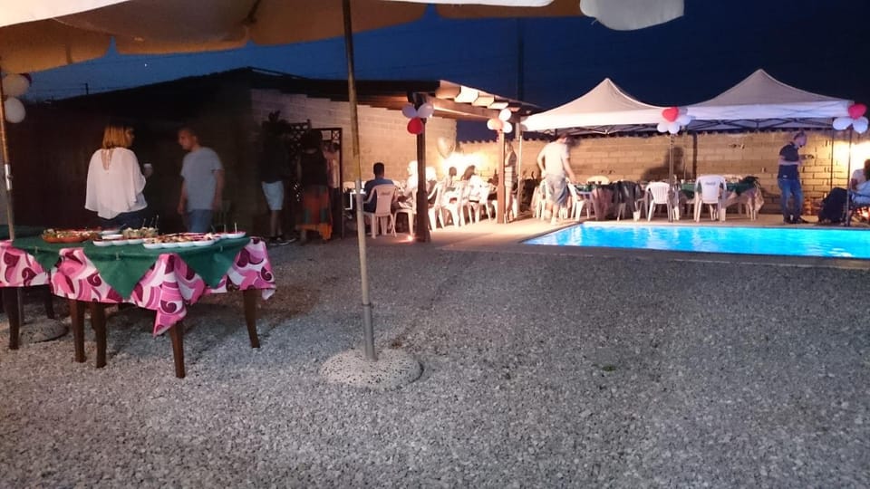 Colazione a bordo piscina abbondante e varia, possibilità di pranzo/cena con prodotti genuini.