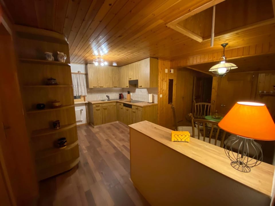 There were steps down to the part of the chalet that was ours. It was not a private building although from pictures one would assume it is. It seems that a fuse went and we had no light in hall or bathroom. This we noticed at 1 AM. We informed the host by whatsapp but were unable to speak to him directly although we tried to in the morning. We had no idea whether he received the message and was dealing with the problem. The problem was solved and we then had light. The kettle was not clean at all - luckily we had our own electric kettle with us and used it instead. The shower had no water pressure. All the mattresses need replacing. We had a choice of three bedrooms, and took the one that was the "best" - definitely not swiss hotel standard. The chalet was roomy, in an excellent location for the winter when you keep the windows closed. There is a strong flowing brook directly behind the property which is very noisy. It is beautiful and the view is magnificent - but the brook is loud. We basically ate and slept in the property and for that it was more than sufficient - the fuse problem could happen to anyone - the lack of response from the property manager we found disturbing.