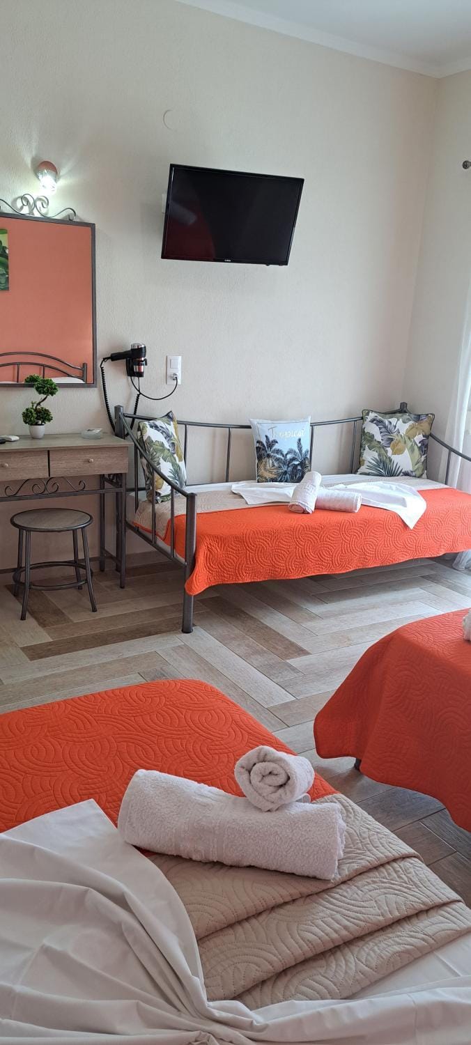 Ak pôjdeme znova do GR, určite si vyberieme toto ubytovanie, mali sme objednané 3 apartmány, ktore su klimatizované, s terasou a slušne vybavene, obchodný su na kazdom kroku velmi dobre vybavene, za poplatok na pláži slnečník a lehátka, plavčík, obsluha, štrková pláž, jemný okrúhly štrk, jedine co bolo nekomfortne ze od kazdeho bol iba jeden kluc (co je samozrejme) ale z vonkajšej strany dveri je guľa tym padom ked vyjdete von, musi vam niekto zvnutra otvorit alebo musíte zobrat kluce a kráti a vypnut komplet elektriku, a este jeden detail, balkónové dvere sa nedaju z vonkajšej strany zaistiť. Su to len drobnosti, stacilo len zosynchronizovať 10 ludi ale ok… celkovo by som hodnotil 8/10 a vyberieme si ho znovu. Ďakujeme.