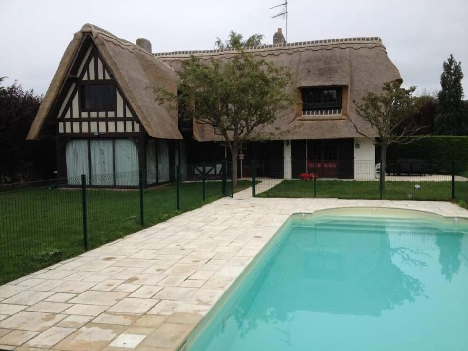 (Text automatically translated) BEAUTIFUL COTTAGE NORMAN, ideally located in a fenced park and private, not overlooked, between sea and countryside 300m beach, large pool, fireplace, peace and quiet, 5 minutes from the center of Deauville, 10 minutes from Deauville golf completely renovated.