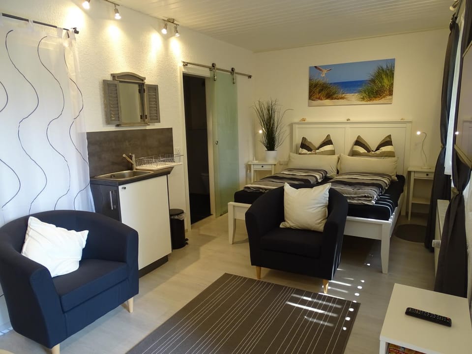 Modern und gemütlich, alles vorhanden, ruhig gelegen. Eigener Parkplatz.