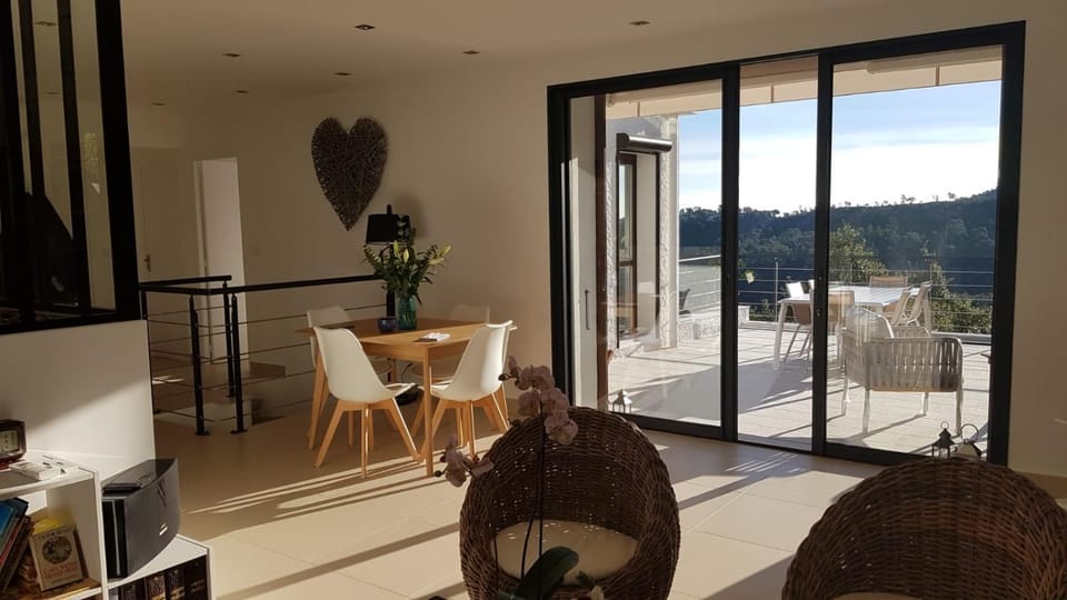 La vue, le domaine de Maure Vieil, la très jolie piscine, le calme, la villa moderne et très bien équipée