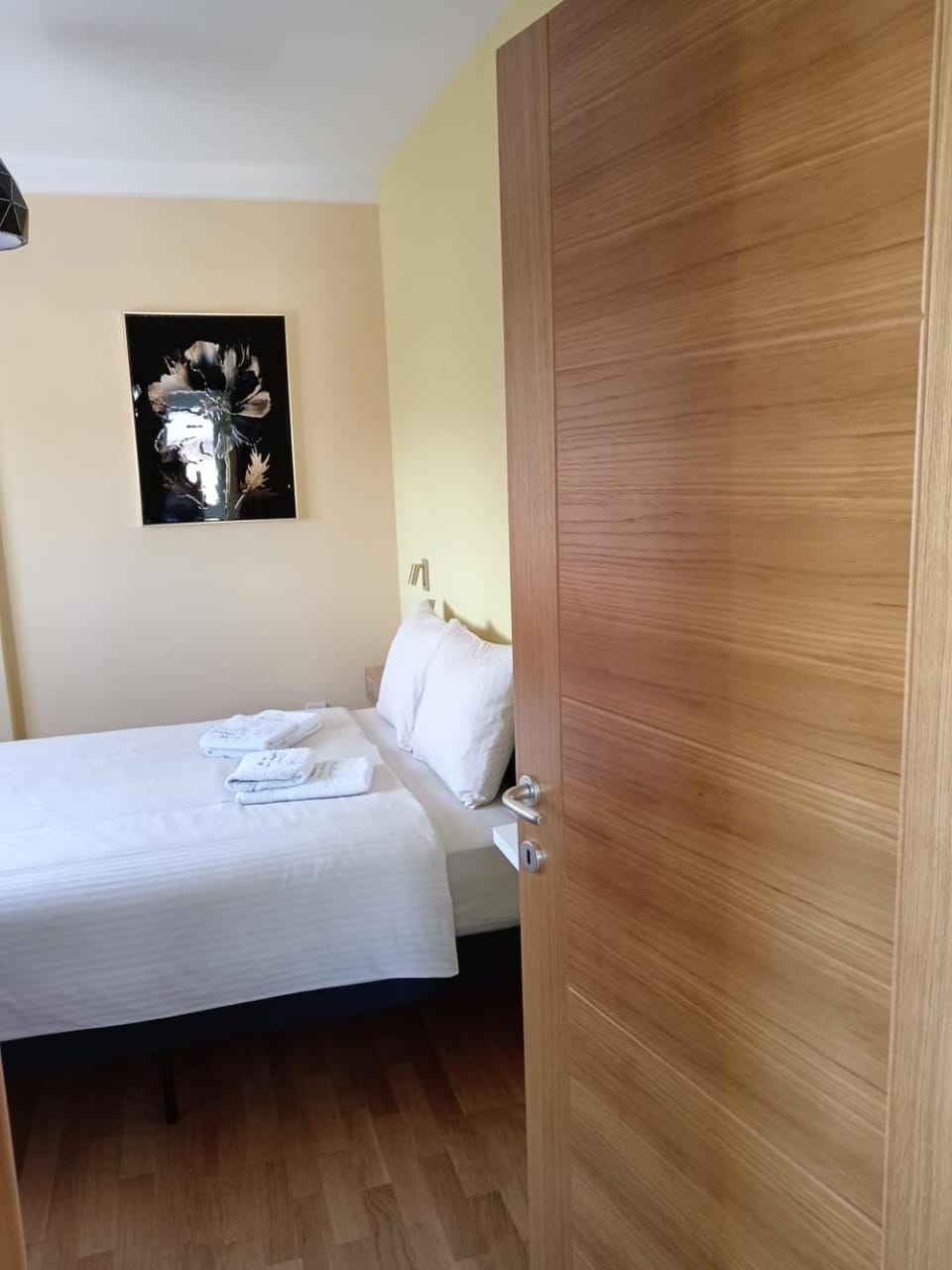 The location of the apartment is excellent very close to the centre. There is a parking lot. Very comfortable bed.