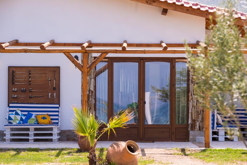 Beautiful location, excelent private beach with own sunbeds and umbrelas. Location is very clean. Close to the village taverns, all kind of shops and rentals but still far enough to be intimate