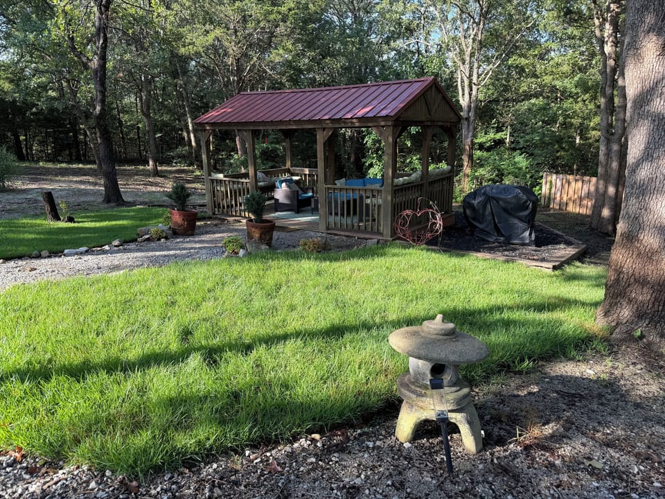 Beautiful cabin for two guests. We are 1.4 mile from Marietta Landing, 6 miles from Lake Murray State Park and Golf Course, only 30 minutes from WinStar entertainment. Somewhere Landing’s Frigg's Haven is a compact cabin that includes luxurious linens, fresh-ground fair trade coffee, a variety of teas, hot chocolate, champagne on arrival. Relax in the gazebo or make s’mores in the fire pit. Furkids welcome (fee required). Close to many Southern Oklahoma attractions, return to Frigg's Haven and Somewhere Landing to relax and restore. You will enjoy the stay!