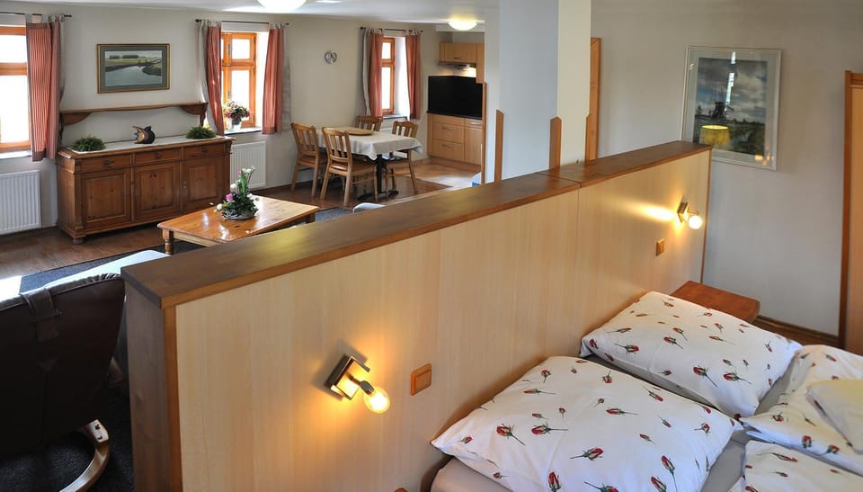 Unkomplizierter Check-in. Wir sind sehr freundlich begrüßt wurden. Das Zimmer war sehr groß und vom Balkon konnten wir vom Nachbarn die Pferde, Schafe und Hühner sehen. Es gibt ein Kühlschrank und alles mögliche was Mensch zum kochen braucht. In der Umgebung ist viel Natur und es ist sehr ruhig. Das Frühstück ist sehr sehr gut und abwechslungsreich gemacht. Viele Parkplätze, Kameraüberwacht.