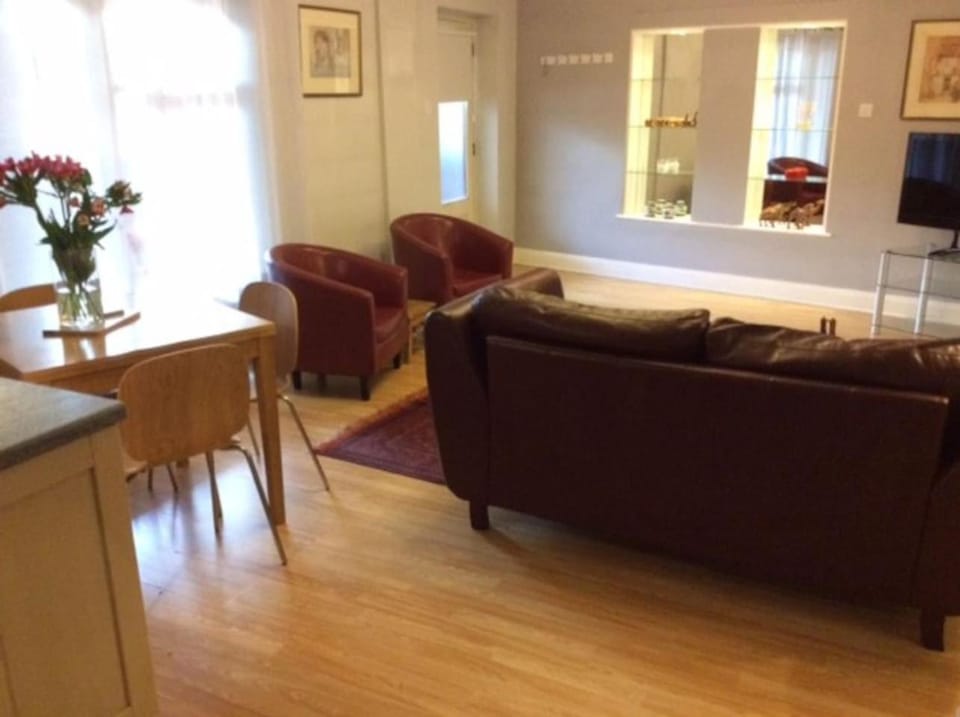 Clean and comfortable apartment with good beds and washing machine and dryer. Great location for the train station and close to pubs and takeaways..