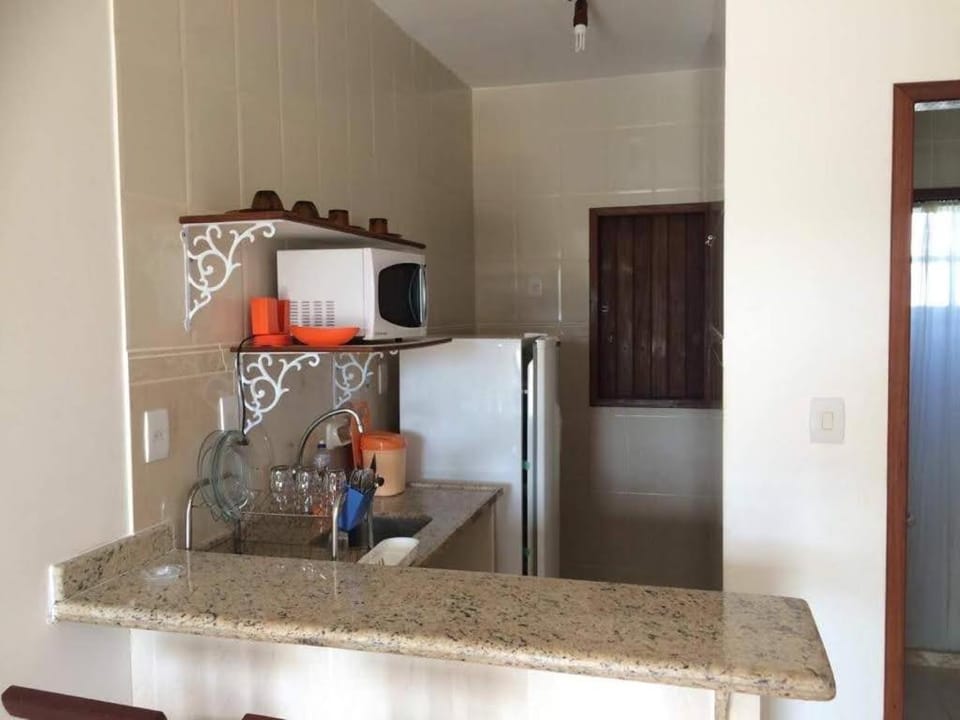 O local dispões de uma cozinha compacta, sem fogão. Mas que ajuda muito (microondas, geladeiras, pratos, talheres e copos).