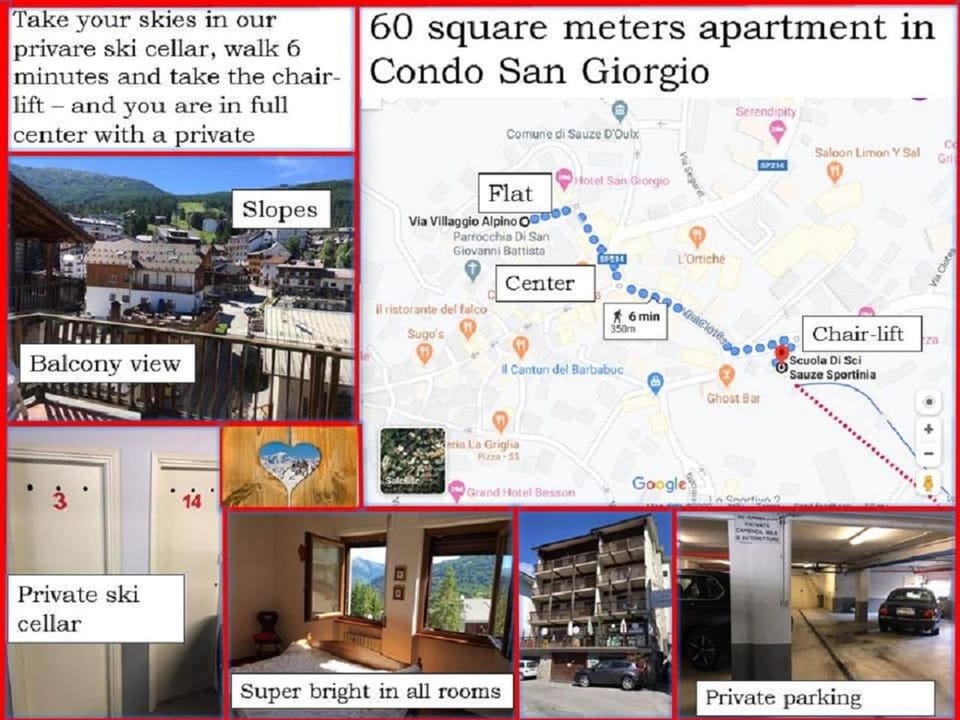 The apartment is very central in Sauze and easy to access (including a modern and spacious lift), plus has great views both over the town and mountains.