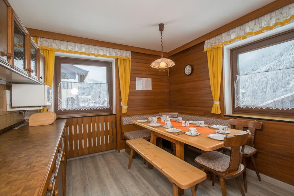 Het is een fijn huis met goede verdeling kamers en badkamers. De douche was in het begin niet bij iedereen warm maar dat is na een paar dagen prima opgelost. Er staat gedeelde keuken vermeld, bedoeld wordt denk ik een aanrecht in twee delen. Het is gewoon een gezellige knusse volledige keuken met Oostenrijkse hoekbank. Daarnaast ook de beschikking over een huiskamer met bankstel en eetkamertafel. In de praktijk weinig gebruikt. Zowel voor skiërs als wandelaars in de nabije omgeving voldoende te doen. Skibus bijna voor de deur.