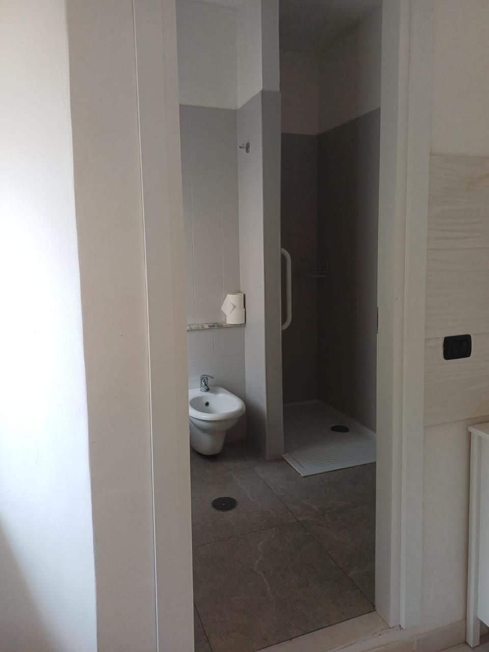 Letto affossato al centro box doccia con porta distaccata dal binario di scorrimento isolamento acustico dai rumori della strada assente colazione confezionata con prodotti discount