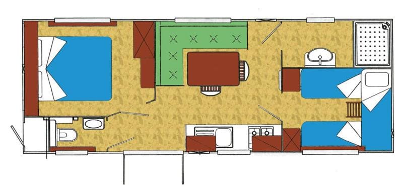 Casa mobile molto datato con tanti pezzi rotti o mal funzionanti, come zanzariere bucate, rubinetti rotti, anta della doccia che scorreva a fatica, la caldaia che dava problemi e funzionava a tratti (forse per causa di ragni che creavano problemi), comunque il proprietario si attivava per sistemare i problemi.