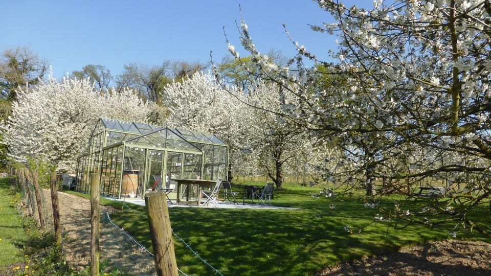 De serre in den hof was prachtig tussen de kerselaars om te ontbijten