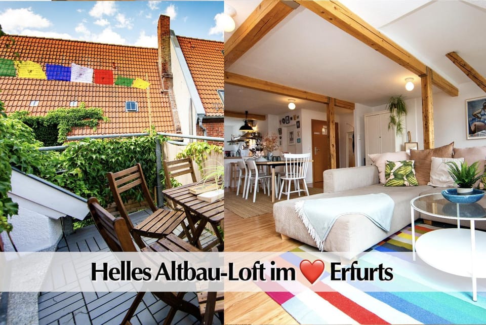 Helle 80m2 Maisonette FEWO mit tollem Balkon ins Grüne, Kingsize Bett, Smart-TV - Nur ein kurzer Spaziergang in die Altstadt und zum Domplatz - Kostenlose Parkplätze in den umliegenden Straßen - Ausgewählte Empfehlungen für Erfurt inklusive