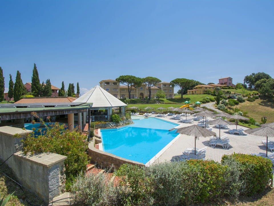 Il Felciaione is a beautiful resort located in Riparbella, Italy, perfect for families seeking a peaceful vacation rental. It boasts 8 houses and 55 apartments, spread across 350,000 m2 of lush greenery, plants, trees, and a beautiful meadow. The resort offers a range of amenities, including a swimming pool (seasonal, May 15th to September 25th, with a depth of 40-140 cm), a terrace with garden furniture, a children's playground, Internet WiFi, parking, an EV charging station, and an installment plan.
