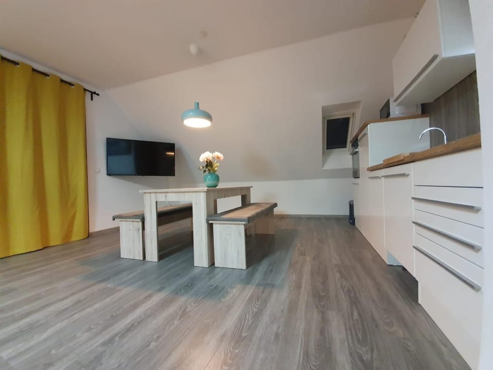 Apartment is brand new, with all the expected house appliances and most amenities. It was sparkling clean and comfortable. There is enough heaters to make the flat comfortably warm in the winter. Big TV was definitely a nice additional feature. Sufficient number of towels with some extras in the bathroom was a nice one as well. All in all, I'd recommend it for groups and families coming for skiing as it is reasonably close to the slopes, as well.
