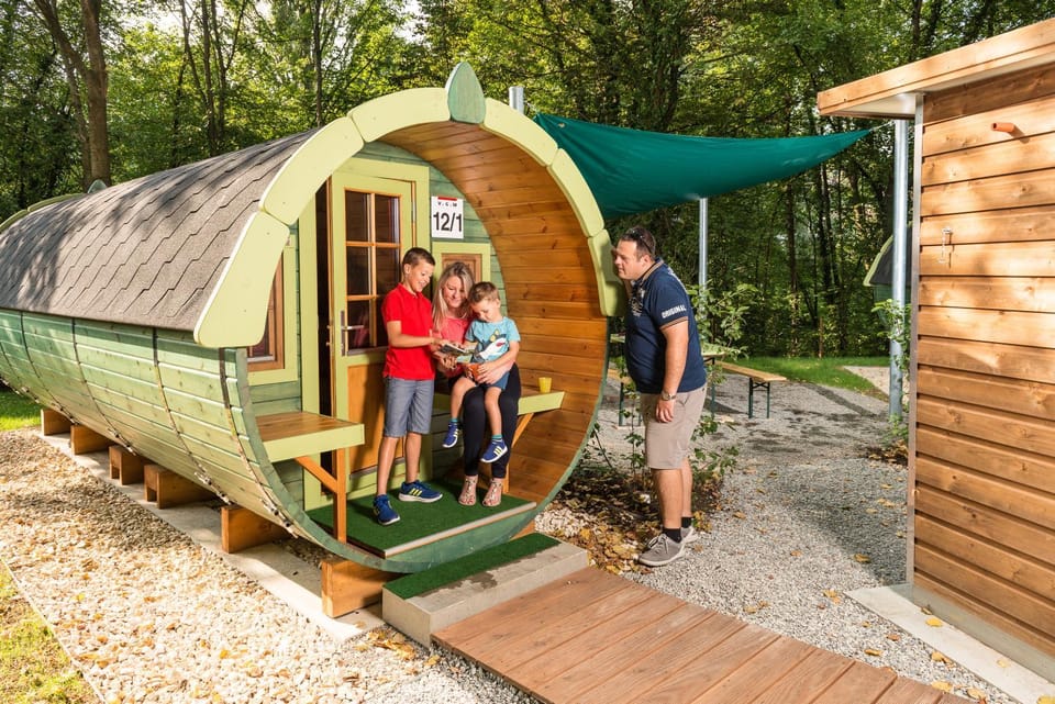 Wunderschöner, ruhig gelegener Platz zwischen Bäumen am Fluss , Einkaufsmöglichkeiten zu Fuß in wenigen Minuten zu erreichen 👍👍 total schönes Fass .