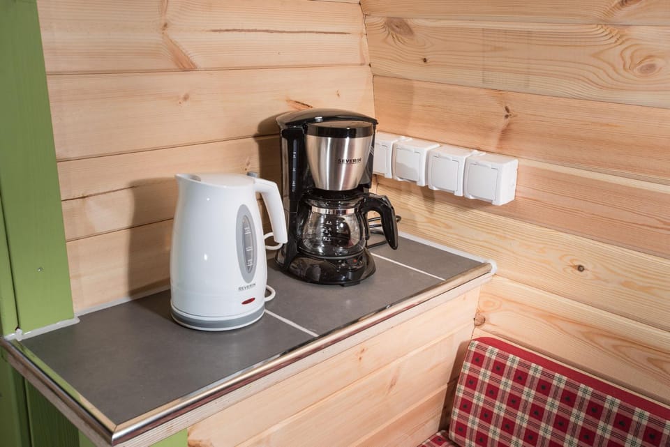 Fässer liegen ziemlich nah beieinander genauso wie die Sitzgelegenheiten... Besteck war leider nicht sauber so wie der Wasserkocher ( sollte entkalkt werden ) 🙈 Schüsseln wären noch toll und eine Spülbürste ( beides haben wir vermisst 😉 )