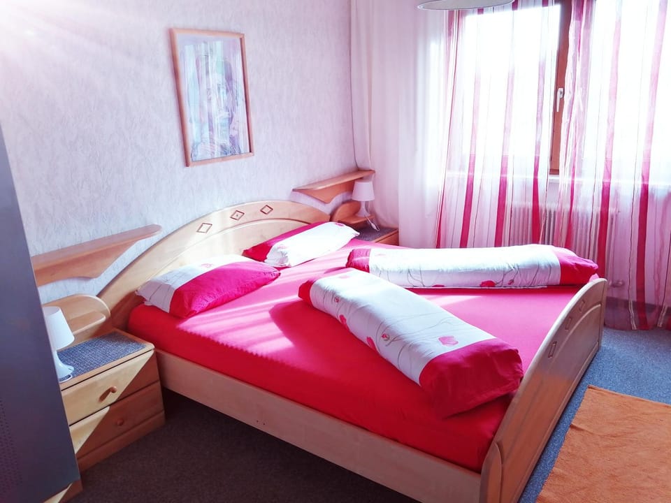 Das Bett war super bequem. Das Frühstück klein aber fein- es hat alles was man braucht. Die Berge sind direkt vor der Haustür.