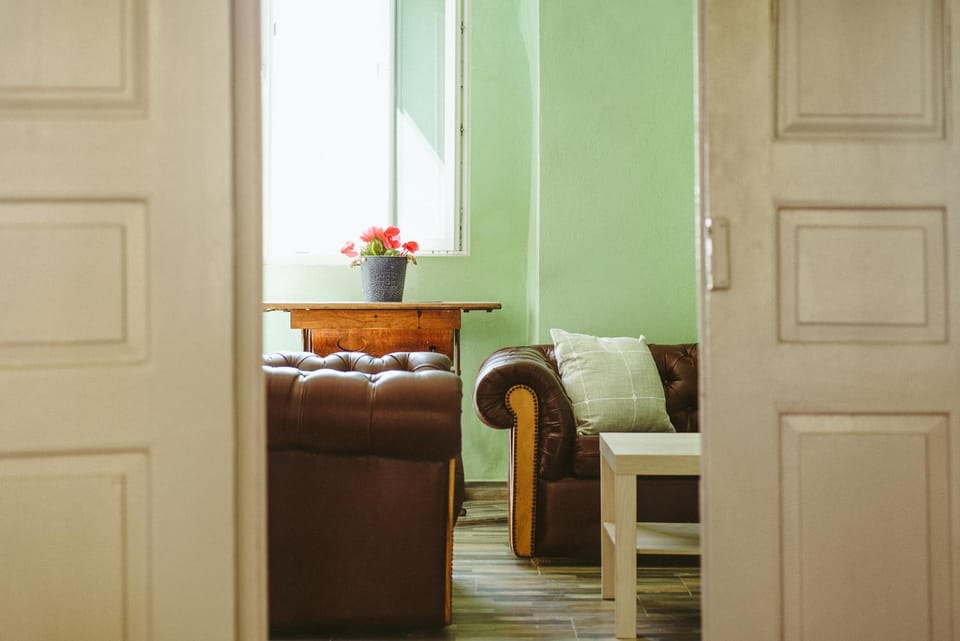 The Central House's location is unbeatable whether you take few miles walk around Raches or just 15 steps to an Espresso bar/cafes/shops/mini market and eateries around the corner. Overall the host was very responsive and helpful. Every amenity provided is well thought out, however how they are provided may not be the most convenient way but they are nevertheless available to you. For instance, solar powered water heater (the apartment's main source for hot water) may not produce enough hot water in winter months therefore you need to turn on the supplemental electric water heater. To do that you need to turn on the related breaker in the circuit breaker box. In addition, you need to shut off the water line that comes from the solar water heater and switch to a line that is fed by the electric water heater (thankfully related valve for both is located in the bathroom) The apartment is on the upper floor of an attached older building which comes with certain charm and character. The staircase is somewhat challenging for people that are tall and/or have big feet. Narrow entrance and passageway only allow you to carry one suitcase at a time. The apartment overlooks at the town square and has a balcony with ample space (even better than the pictures). Rooms have high ceilings that make the apartment look bigger and roomier. The apartment gets plenty of natural light.