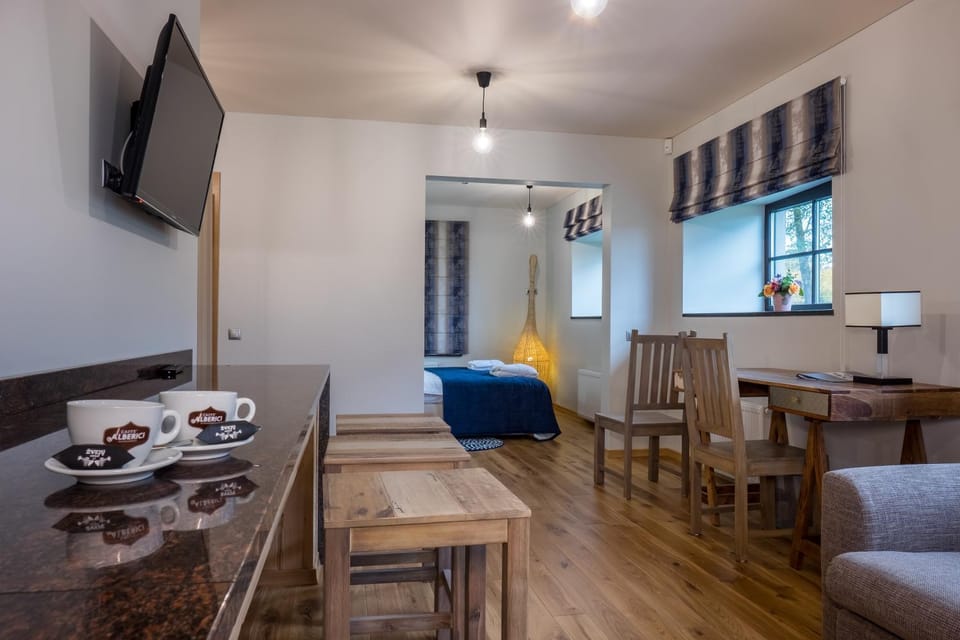 Parking is not specified as an available amenity at Žvejų užeiga. For more information, we encourage you to contact the property about where to park.