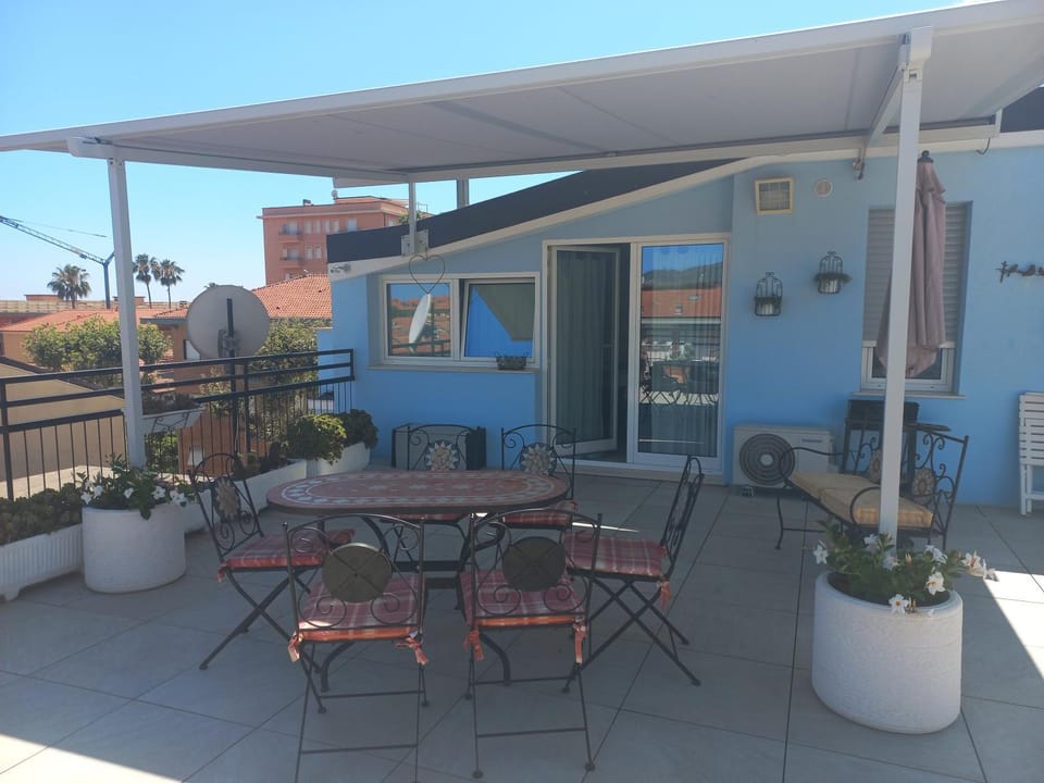 Appartement traversant au 4ème et dernier étage, deux immenses terrasses surplombent la ville, un havre de paix et de luminosité, tout cela à 2 minutes à pied de la plage publique. La situation est exceptionnelle au cœur de ville et des animations. Nous avons passé un excellent séjour en famille. L'appartement est parfaitement équipé pour un séjour reposant (salon extérieur, parasol, transats, loveuse, machine à laver, lave vaisselle, jeux et livres enfants, rangements, wifi, tv, climatisation, stores extérieurs etc.). L'hôtesse Antonella était très accueillante, aimable et disponible même pour une arrivée tardive.