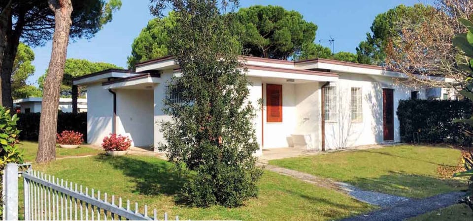 Bibione. The holiday flat is located on an enclosed garden plot with lawn, flowers and trees, bordered by a fence and a hedge. The landlord does not live in the house or on the property. Access is via a side road. Parking (for 1 car) on the property.