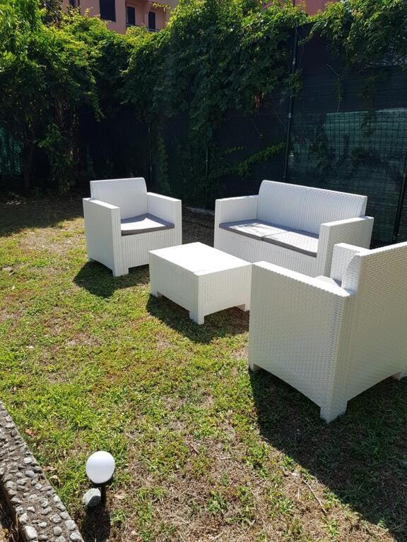 Buona pulizia e giardino esterno con tavolo esterno (coperto) per mangiare all’aperto
