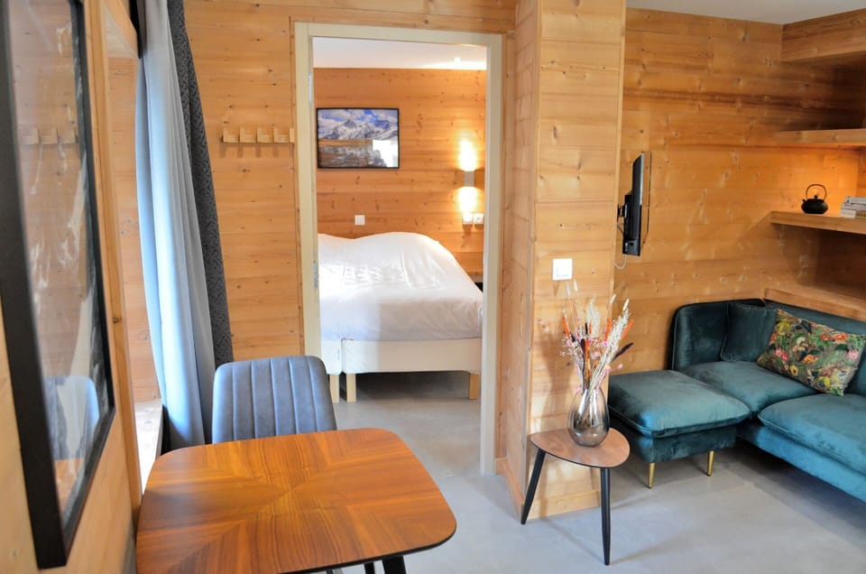 You can choose if you want 2 single beds or a queen size bed. Designed with open-concept living area and kitchen.