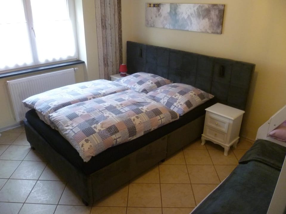 Die Matratzen waren in Ordnung aber an der ein oder anderen Stelle schon durch gelegen. Das Rollo dunkelt den Raum nur minimal ab, wenn mann die Jalousie zusätzlich zu macht wird man nicht durch die Sonne geweckt. Direkt vor dem Schlafzimmerfenster ist der Pausenhof einer Grundschule. Die Kinder stören nicht, nur die Elterntaxen zwischen 08:00 Uhr und 08:20 Uhr. Das kann die Gastgeber aber nicht beeinflussen.
