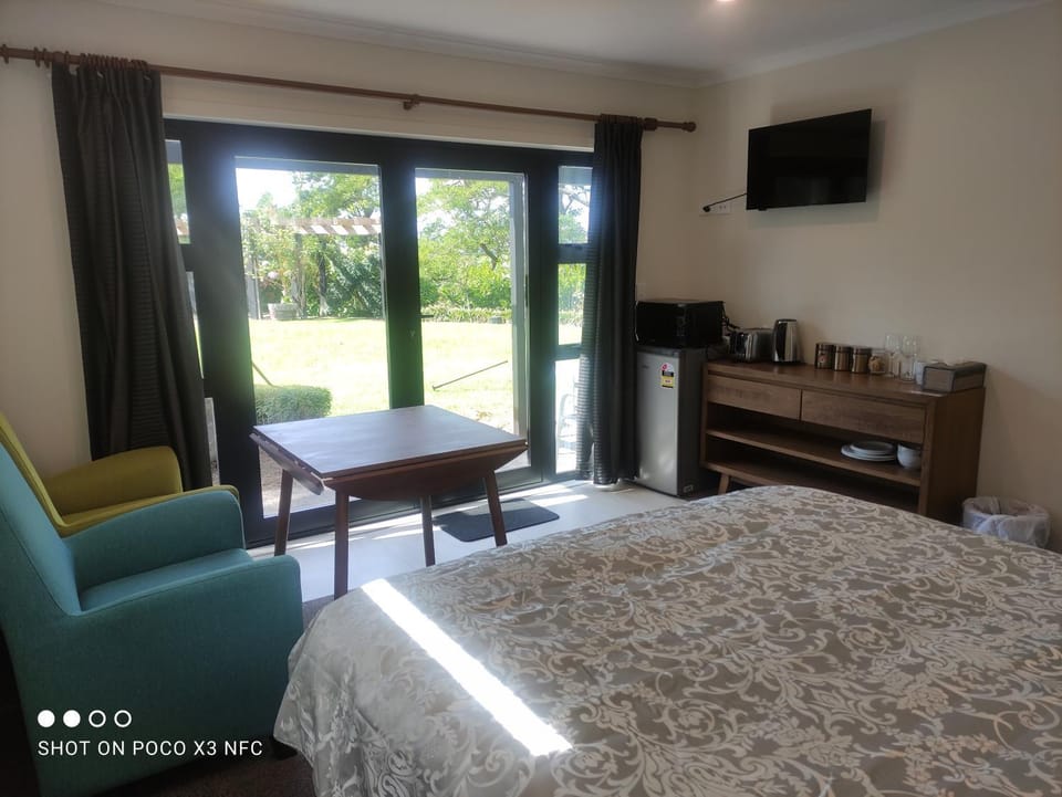 The room is basically a nice hotel room, but with very thoughtfully provided, tea, coffee, sugar, cookies, a cutting board, forks, knives, spoons and fresh milk. So that small coffee space was very nice to have. The garden surroundings are very nice and it was quiet too. So, much better than a hotel room!