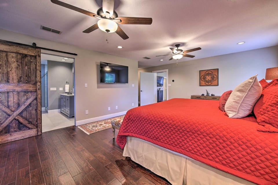 Looking to create some memories in New Braunfels? Look no further than our House, Private Retreat in New Braunfels near Gruene, Guadalupe River, and Schlitterbahn. Enjoy top-rated amenities including Family friendly, and more.