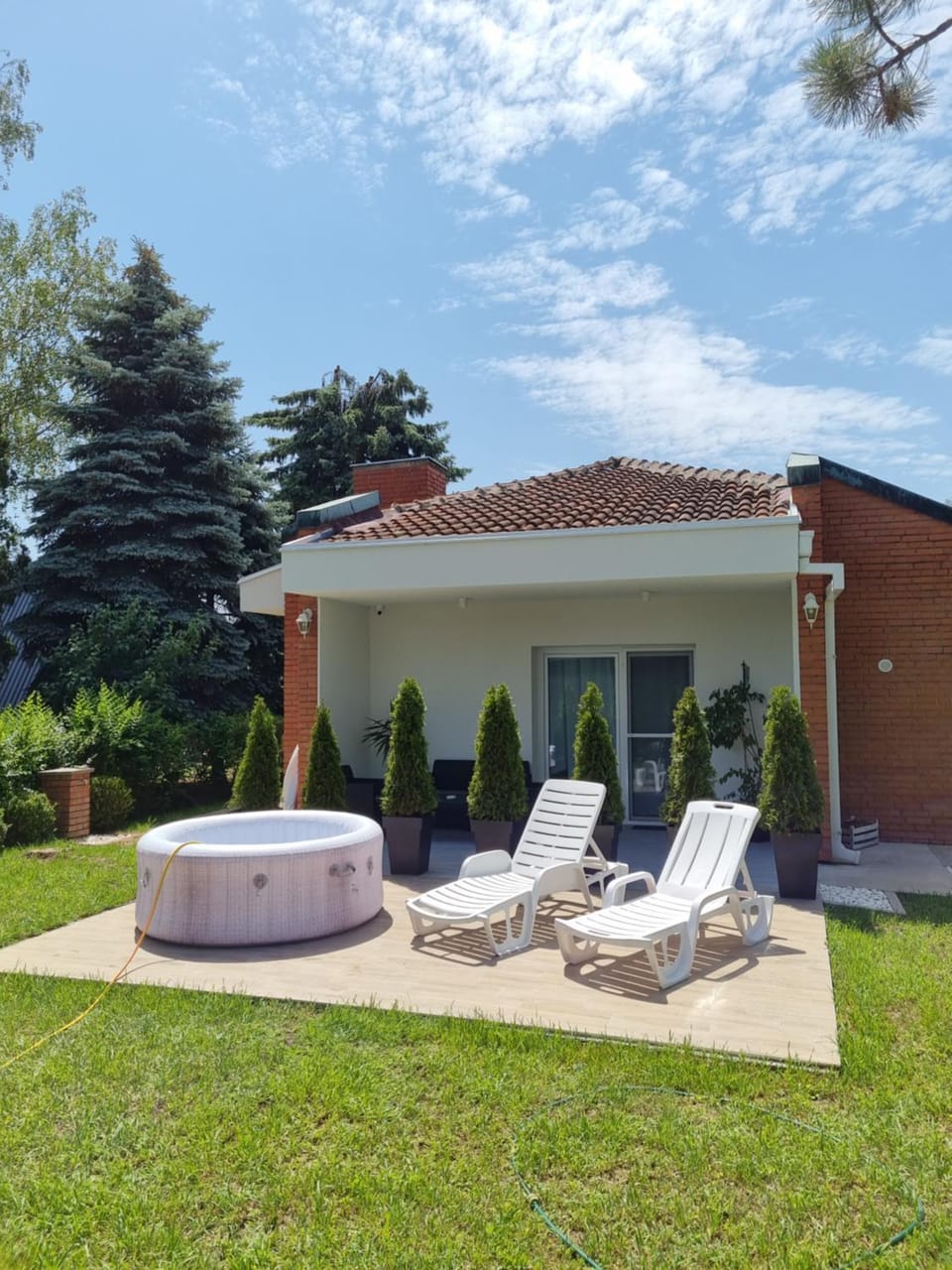 Odlično organizovan prostor. Udobno, čisto , dekorisano sa merom i ukusom. Mala ali odlično opremljena kuhinja. Dvorište lepo uredjeno.A za mene ko vlasnika psa je veliku stvar predstavljala livada ispred kuće po kojoj je naš pas bezbrižno jurio kao i česma u dvorištu. Kuća je 300metara od šetališta i 800metara od kompleksa bazena