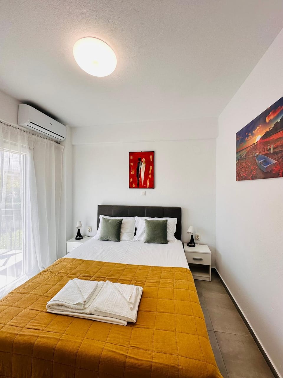 The studios is new and very clean, in a good location — about a 6–7 minute walk from the sea.